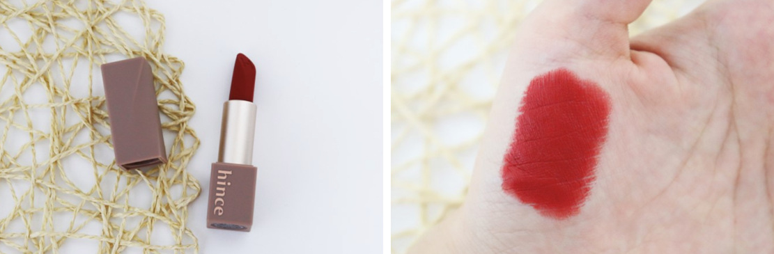 我在hince专门制作唇膏试色卡片的地方试用了几款哑光口红,质地都非常轻薄,涂抹起来很柔嫩松软,涂在手背上都非常好看,最后我买了hince蕙思气质提升哑光口红,ABOVE PASSION砖红色的色号,当时还给我赠送了蓝色的柔纱手袋,真是美极了。