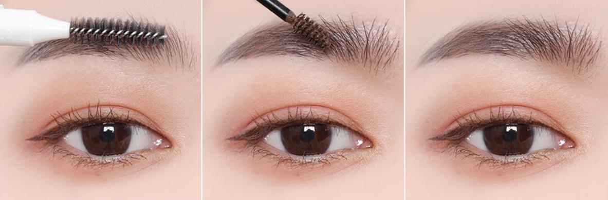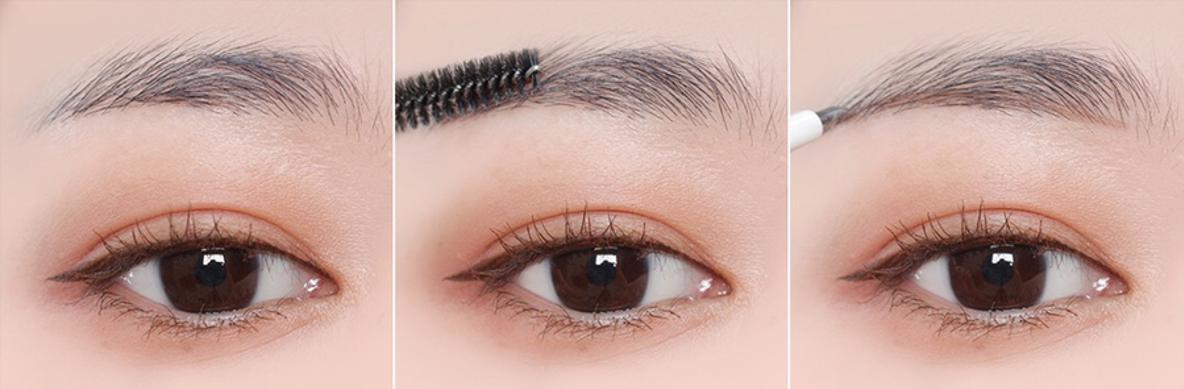 下面的图片就是我化的眉部妆容的过程,用深棕色眉笔画出基本眉形,再用深棕色眉膏叠涂,增加浓密感。我的眉毛属于量少偏长的类型,可能会看起来有点稀疏,所以每次需要着重画眉妆的时候,我一定会在用完眉笔后,用眉膏把每一个空隙填满!